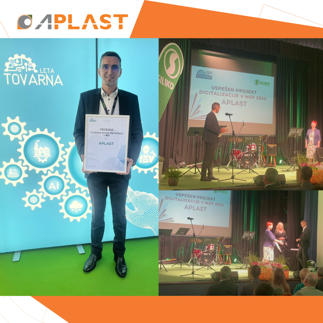 Na sklepnem dogodku Tovarna leta 2025, ki je letos potekal v Sevnici, smo v podjetju Aplast ponosno prejeli priznanje za uspešne projekte digitalizacije v kategoriji malih in srednjih podjetij.